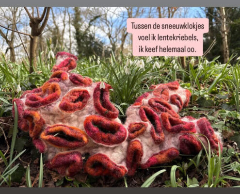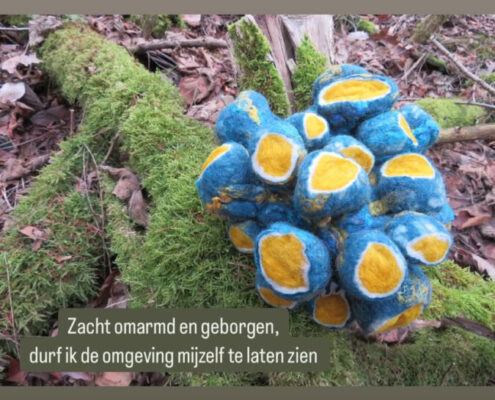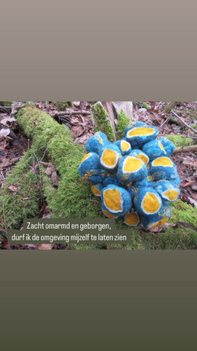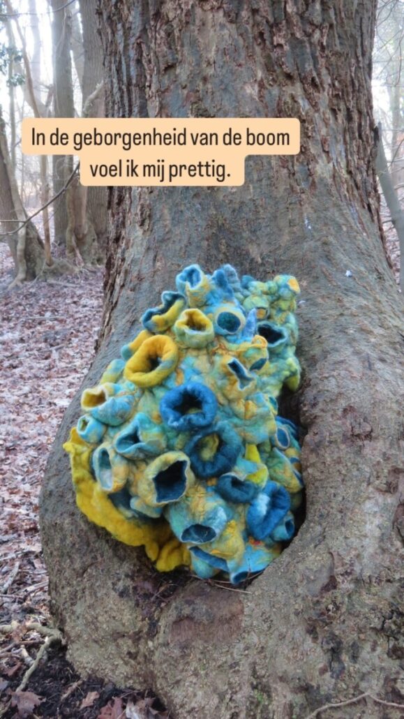 In deze serie plaats ik viltobjecten in de natuur. Wat voor gevoel roept dat bij mij op? Deze serie plaats ik op Facebook en Instagram. Dus de komende maanden zal deze serie groeien.